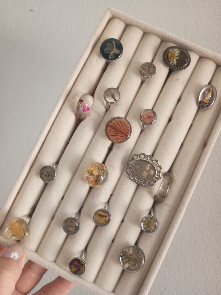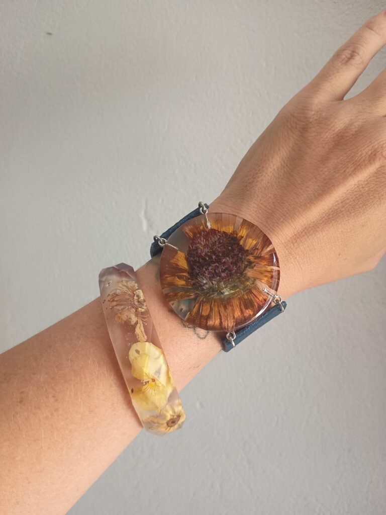 Al principio, hacía cuadritos con flores secas. Más adelante, conocí la resina que me abrió un universo inmenso. El nombre de mi emprendimiento surgió a partir de la palabra floreado: quería que sonara a algo lleno de flores [por eso, el emprediemiento se llama Floreando].